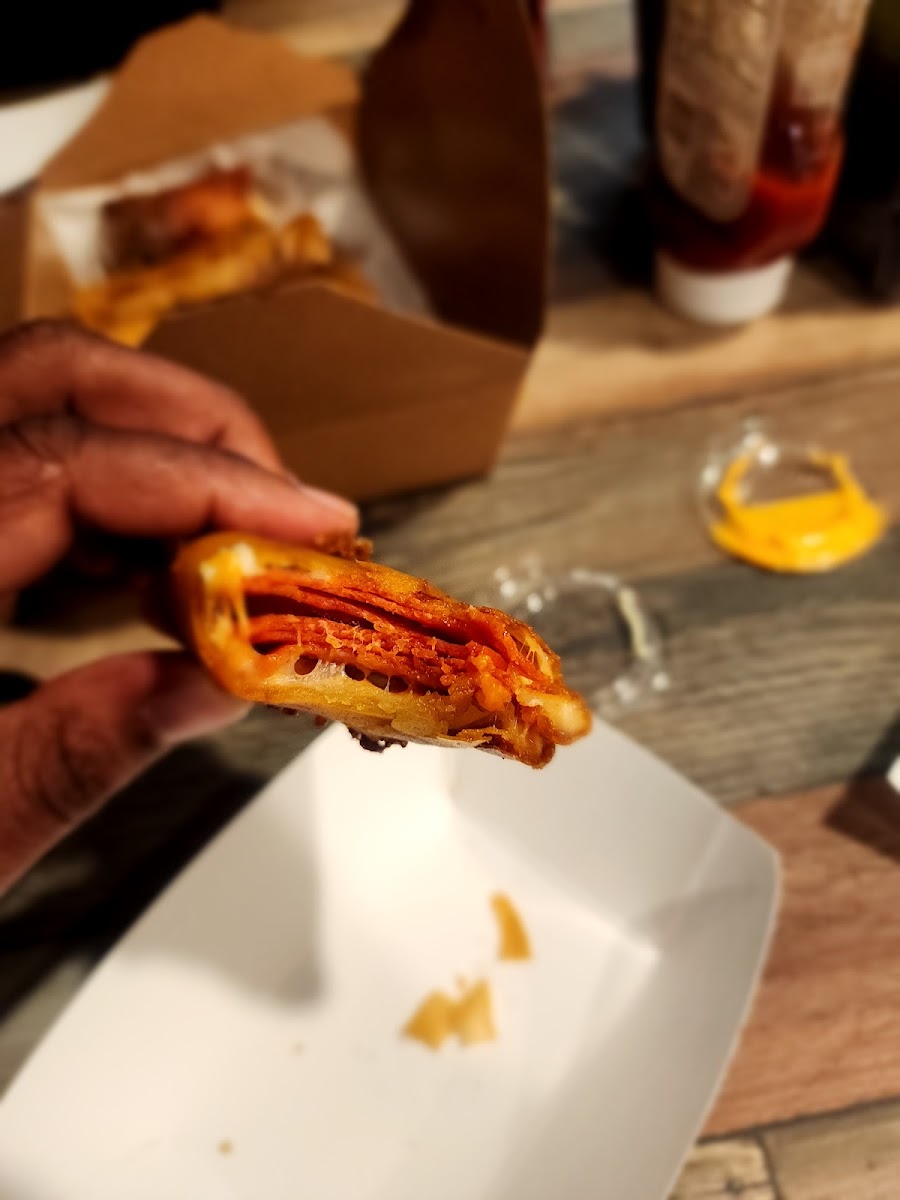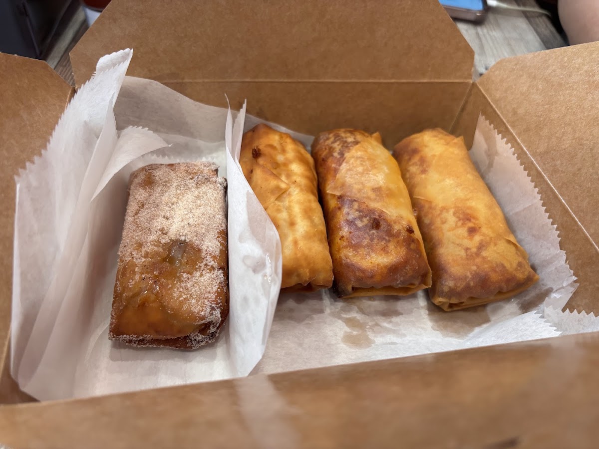 Fast service with some very unique egg roll creations! My girlfriend and I tried the pepperoni pizza, chicken parm, macaroni & cheese, and apple pie. Overall, I found them all quite good however I wish there was a bit more Italian seasoning in the chicken parm roll. However, it was still a fun and affordable dining experience that I would recommend to anyone enjoying a day in downtown Norfolk!