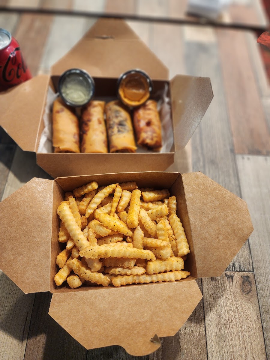 If you’re in the mood for sides, Rolled Up Gourmet Egg Rolls doesn’t disappoint with options like crispy seasoned fries or sweet potato fries, each perfectly complementing the main event. And to wash it all down, a selection of refreshing drinks including traditional sodas, Jarritos, and natural fruit juices await.